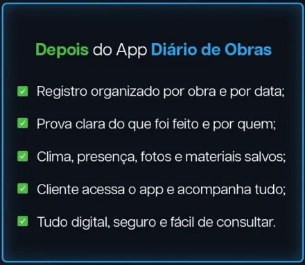Sim, O Diário de Obras do OBRANAMÃO é muito prático de usar e nós também treinamos a sua equipe de canteiro.